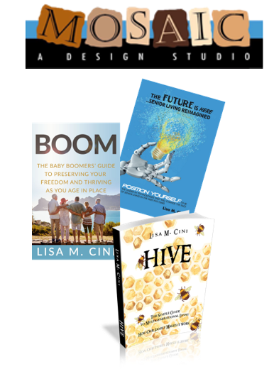 7-Time #1 Best Selling Author for her 3 books on senior living, design and tech, Lisa M. Cini is an award-winning, internationally recognized designer and entrepreneur with more than 30 years’ experience developing interiors utilizing the latest technologies curated from around the globe. Her company, Mosaic Design Studio, is the nation’s leading provider of design services for aging in place environments.
